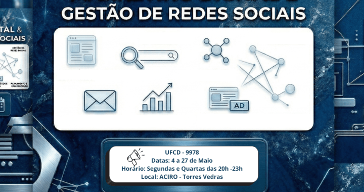 A ACIRO vai dinamizar a Formação em Marketing Digital e Gestão de Redes Sociais – (UFCD 9978), destinada profissionais ativos, empregados e desempregados que, no âmbito da sua formação contínua, pretendam aperfeiçoar/atualizar os conhecimentos nas respetivas áreas de formação.